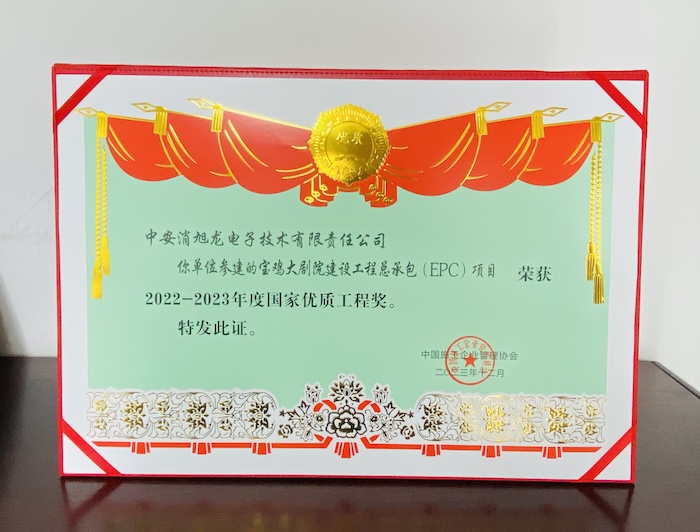 The New Year, the good news begins! Recently, the weak current intelligent project of Baoji Grand Theater Construction General contracting (EPC) project, which Zhongan Xuelong Electronic Technology Co., LTD., a subsidiary of Zhongan Branch, won the first batch of national Quality Engineering Award in 2022-2023.