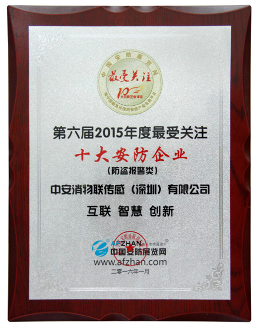 On March 29, 2016, the 6th “Sizheng Cup Top 10 Most Popular Security Enterprises” award ceremony and 2nd China Security New Products/Technologies Symposium commenced in Hangzhou. China Security & Fire IOT Sensing (Shenzhen) Co., Ltd. (CSFIS) won the “2015 Top 10 Most Popular Security Enterprises” award in the anti-theft alarm category.