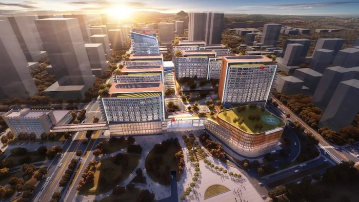 The second phase of the Seventh Affiliated Hospital of Sun Yat-sen University (Shenzhen) is located at No.628, Zhenyuan Road, Xinhu Street, Guangming District, Shenzhen, with an area of 153,100 square meters, a new construction area of 699,770 square meters and a total of 3,200 beds. In the future, it will be built into a national regional medical center, emergency and disaster medical center and health and rehabilitation center.