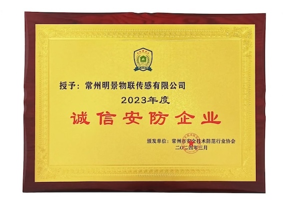 Changzhou Ming Vision Union Sensor Co., Ltd., a subsidiary of Zhonganke, won the honorary title of "2023 Honest Security Enterprise" and "2023 Excellent Security Product in Changzhou Security Industry".
