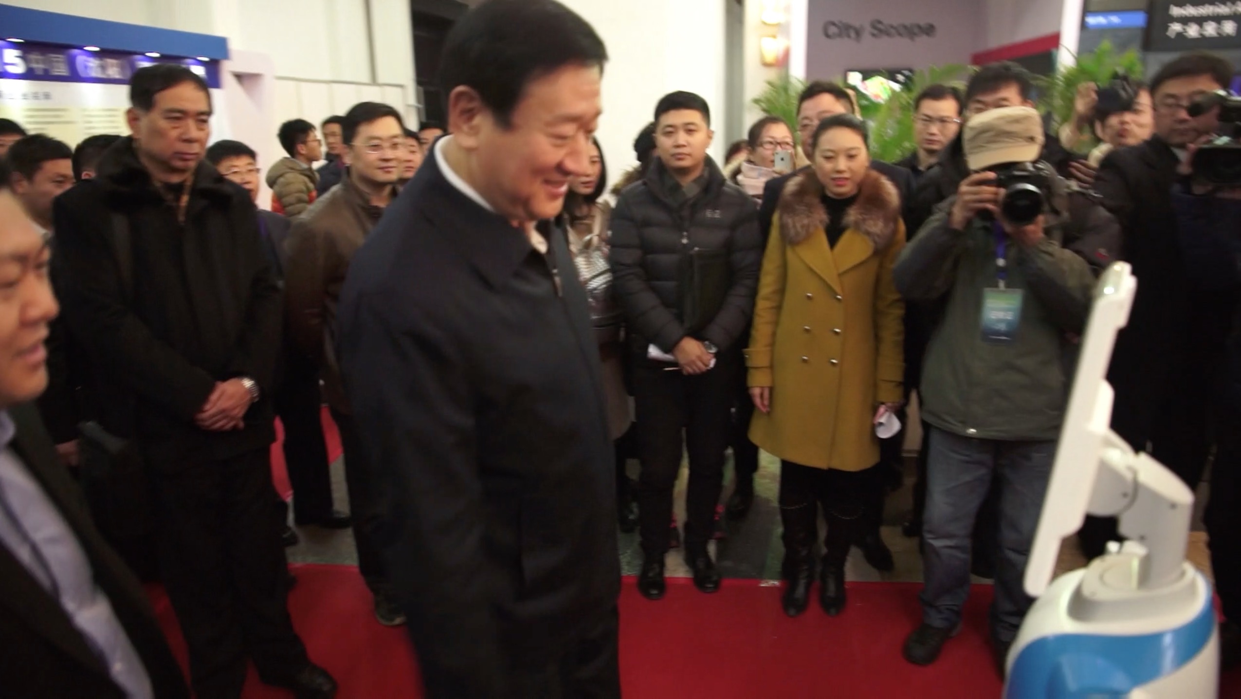 沈陽市市長潘利國與中安消智能服務(wù)型“替身”機器人互動