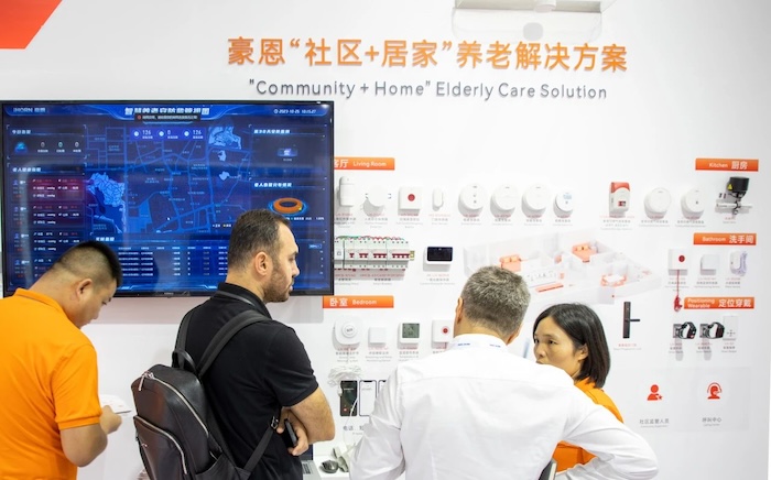 在當(dāng)今的數(shù)字化時代,豪恩不僅僅局限于深耕安防行業(yè),同時也在拓展和周邊行業(yè)的多點聯(lián)接。此次豪恩智慧消防和智慧養(yǎng)老解決方案也驚艷亮相安博會。