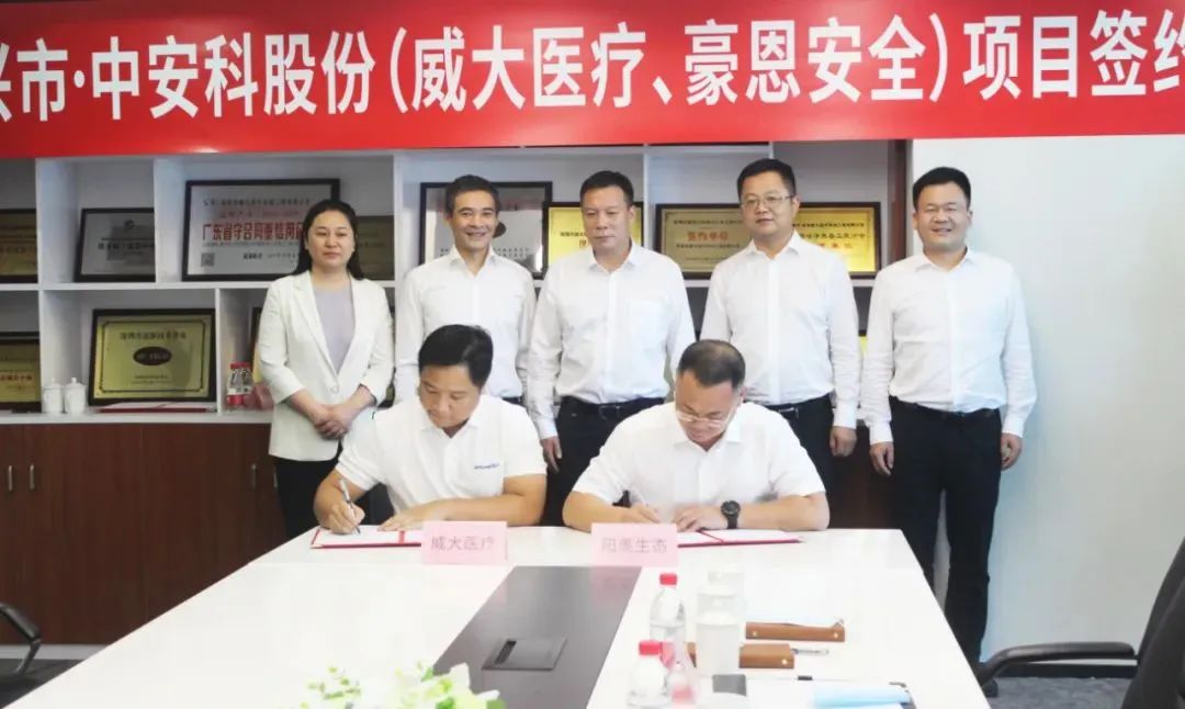 項(xiàng)目合作簽約儀式上,中安科子公司(威大醫(yī)療、豪恩安全)分別與宜興市陽(yáng)羨生態(tài)旅游度假區(qū)簽訂了新型項(xiàng)目合作協(xié)議。