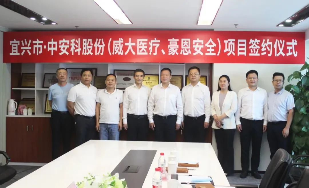 7月9日,中安科子公司(威大醫(yī)療、豪恩安全)與江蘇省宜興市陽(yáng)羨生態(tài)旅游度假區(qū)項(xiàng)目合作簽約儀式在深圳市威大醫(yī)療系統(tǒng)工程有限公司隆重舉行。宜興市委書記封曉春、市委常委任飛等領(lǐng)導(dǎo)一行,與中安科股份集團(tuán)董事長(zhǎng)吳博文、威大醫(yī)療總經(jīng)理李振東、豪恩安全總經(jīng)理文洪等親臨簽約現(xiàn)場(chǎng),共同見證并進(jìn)行了項(xiàng)目簽約。