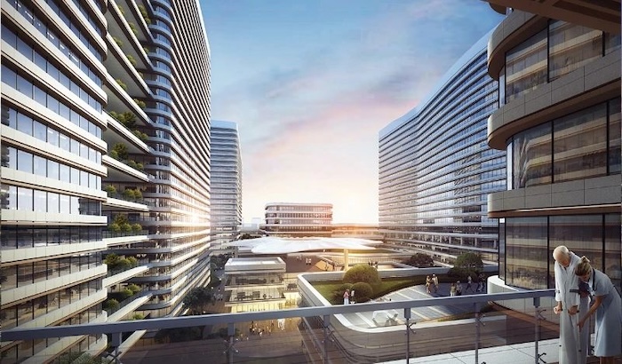 宗地二項目總用地面積約33360.49平方米,項目基地位于西安市經(jīng)濟技術(shù)開發(fā)區(qū),南鄰尚林路,東臨規(guī)劃路,北鄰濱河大道,西鄰規(guī)劃路??偨ㄖ娣e186573.56平方米,其中地上103428.43平方米,地下建筑面積83145.13平方米,主要建設(shè)門診醫(yī)技、病房、后勤用房、餐廳、廚房、地下設(shè)備用房、停車等建筑。