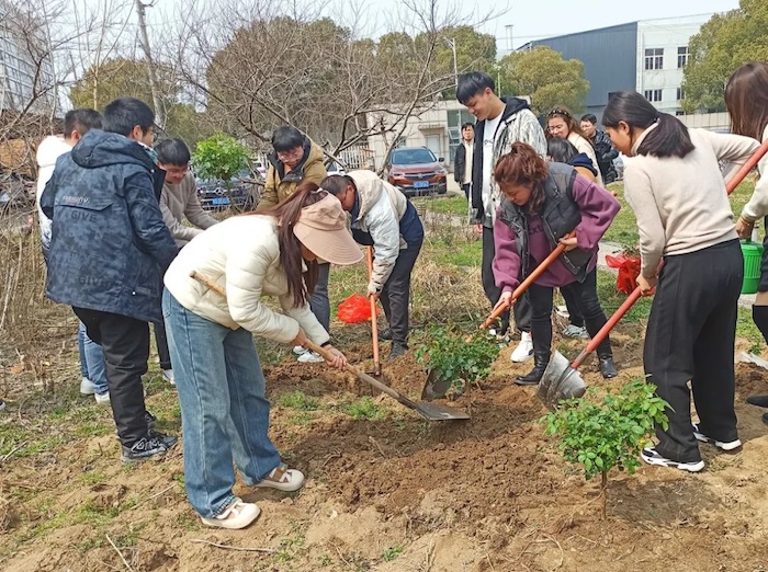 在植樹現(xiàn)場(chǎng),大家干勁十足,分工協(xié)作,有的揮鍬鏟土、有的細(xì)心栽種、有的培土澆水……各個(gè)環(huán)節(jié)有條不紊,默契配合。