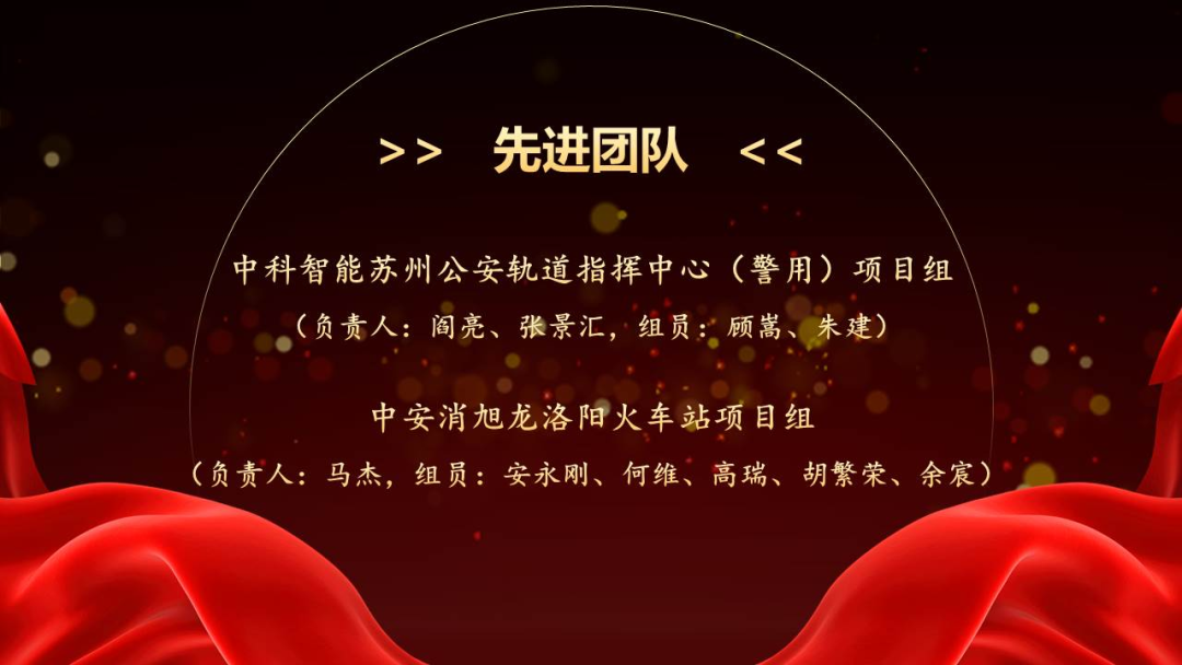 “先進團隊”——中科智能蘇州公安軌道指揮中心(警用)項目組,負責人:閻亮、張景匯,組員:顧嵩、朱建,承建的“蘇州市公安軌道應急指揮中心警用智能化采購與集成項目”,涉及10個公安軌道應用業(yè)務智能化系統(tǒng),設備種類多、供貨期不一。為保質保量、按期完工,項目組制定了詳盡的施工進度計劃、設備材料檢驗標準等,配合協(xié)調設計、分局、線網實施單位、各系統(tǒng)供應商廠家等專業(yè)對接技術需求及落地,最終完美交付,得到了各方的充分肯定,目前該項目正在申報公安部科技進步二等獎。
