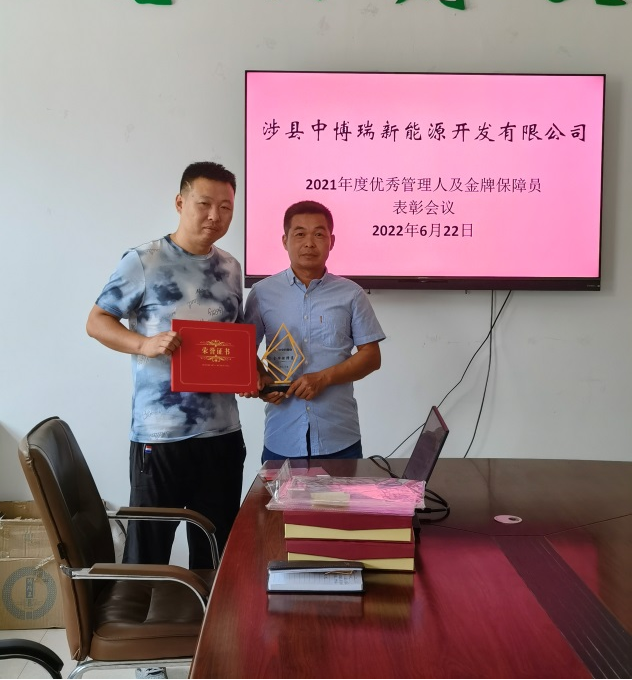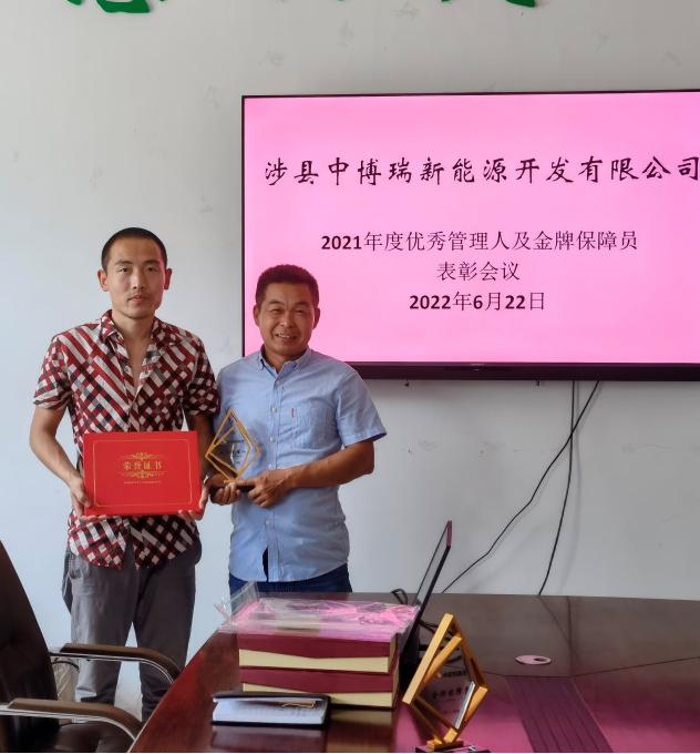 “優(yōu)秀管理人”——陳小亮,趙光裕光伏電站站長,負責電站安全生產,在2021年邯鄲地區(qū)發(fā)生連續(xù)暴雨極端天氣時,帶領運維團隊風雨無阻地巡視設備設施、搶修塌方區(qū)域,保障了電站正常運行;定期組織運維人員開展技術培訓、學習設備保修保養(yǎng)技術、強化安全教育,實現(xiàn)全年零安全事故。
