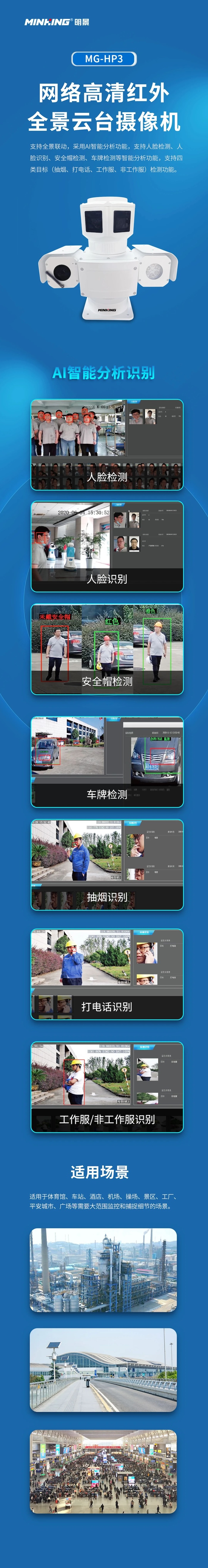 明景此次獲獎的360度全景4K智能高清5G車載系統(tǒng)(型號:MG-HP3),支持全景聯(lián)動,采用AI智能分析功能,支持人臉檢測、人臉識別、安全帽檢測、車牌檢測等智能分析功能,支持四類目標(抽煙、打電話、工作服、非工作服)檢測功能。該產(chǎn)品適用于體育館、車站、酒店、機場、操場、景區(qū)、工廠、平安城市、廣場等需要大范圍監(jiān)控和捕捉細節(jié)的場景。