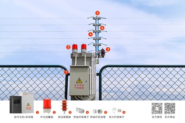 如遇強(qiáng)行入侵,電子圍欄將給予安全能量范圍內(nèi)的脈沖高壓打擊,警告非法入侵者,動(dòng)搖其攀越圍欄的能力與動(dòng)機(jī)。同時(shí),系統(tǒng)現(xiàn)場(chǎng)發(fā)出高分貝聲?shū)Q報(bào)警,并與其它安防系統(tǒng)聯(lián)動(dòng)(如報(bào)警主機(jī)、監(jiān)控系統(tǒng)等),從而達(dá)到安全阻擋目的。