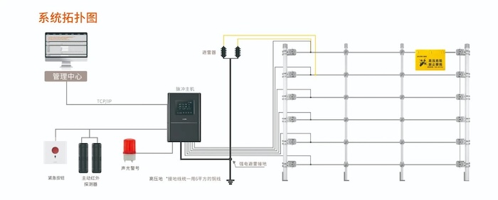 系統(tǒng)電子脈沖每分鐘60次掃描前端圍欄的每一根導(dǎo)線,每個(gè)脈沖峰值根據(jù)設(shè)置值的不同在700V-5000V之間,可以通過(guò)瞬間電壓對(duì)非法入侵做出反擊。